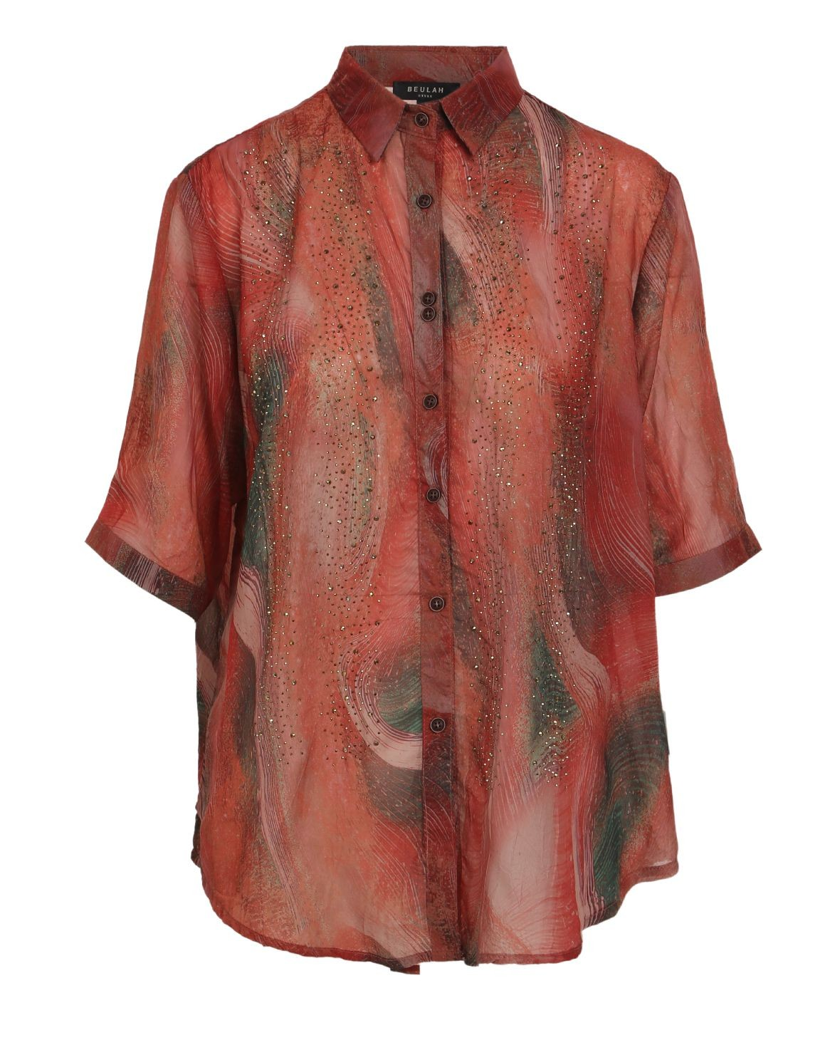 BEULAHSTYLE Abstract Swirl Printed Chiffon Blouse