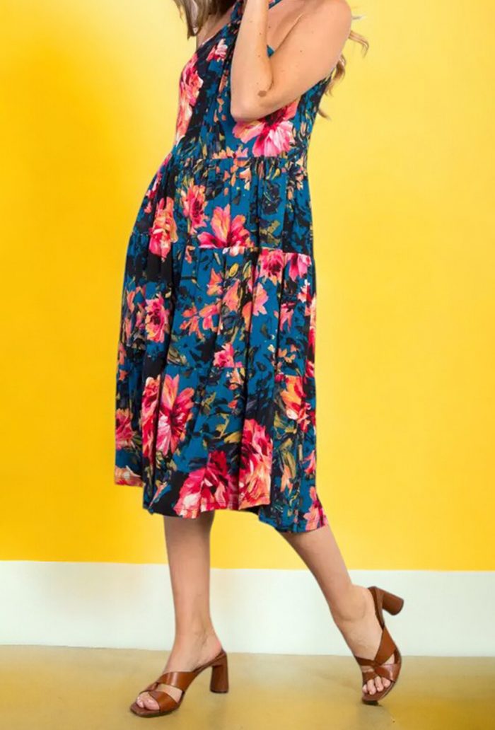 The Blooming Floral Loose Fitted Cocktail Dress offers effortless elegance and comfort. Its vibrant floral print and flattering loose fit make it perfect for any occasion, from brunch to cocktail parties. Crafted from a durable and soft polyester-nylon blend, it drapes beautifully and allows for easy movement