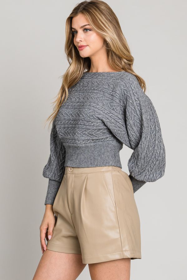 The Cable Knit Cloud Off-Shoulder Heavenly Sweater offers a blend of modern design and classic craftsmanship. Made from a soft and cozy cable knit fabric, this sweater provides warmth and comfort for cooler days. The off-shoulder neckline creates a chic silhouette, while the puff sleeves add a touch of volume and elegance. Its versatile grey color complements a wide range of outfits, from casual denim to tailored separates. Thoughtfully designed for style and practicality, this sweater is a sophisticated addition to any wardrobe.