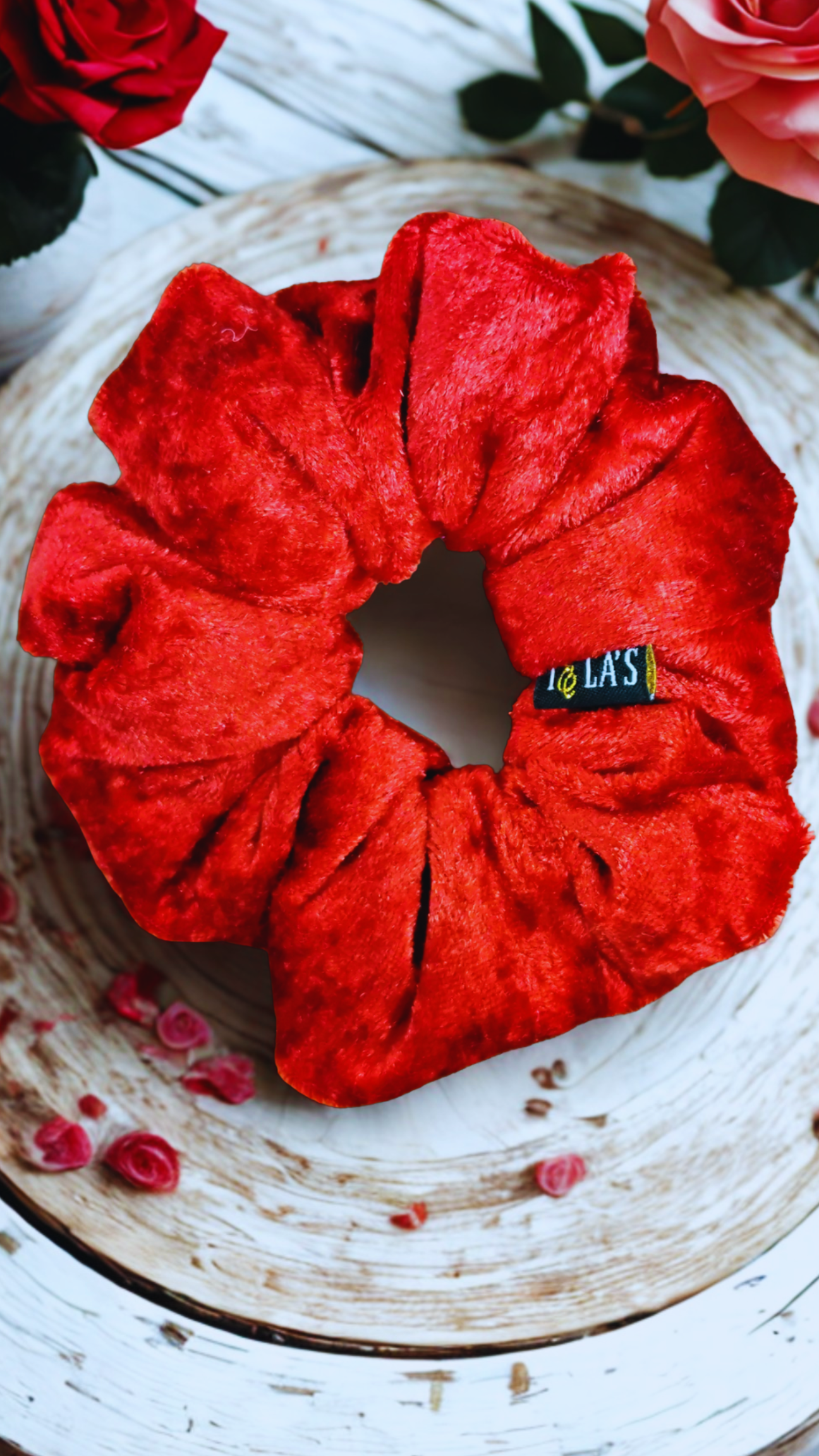 The Cherry Red Velvet Scrunchie combines timeless elegance with superior craftsmanship. Made from soft, high-quality velvet, this scrunchie offers a smooth and gentle texture, making it suitable for all hair types while minimizing breakage and discomfort. Its vibrant cherry red color provides a bold yet refined accent, perfect for both everyday wear and special occasions. The versatile design makes it an effortless choice for a variety of hairstyles, from ponytails to sophisticated updos. Each scrunchie is meticulously handmade and triple-inspected to ensure flawless quality. Featuring a securely double-knotted elastic core, it delivers a durable and reliable hold while maintaining comfort and style. For best care, spot clean or gently hand wash in cold water and lay flat to dry.