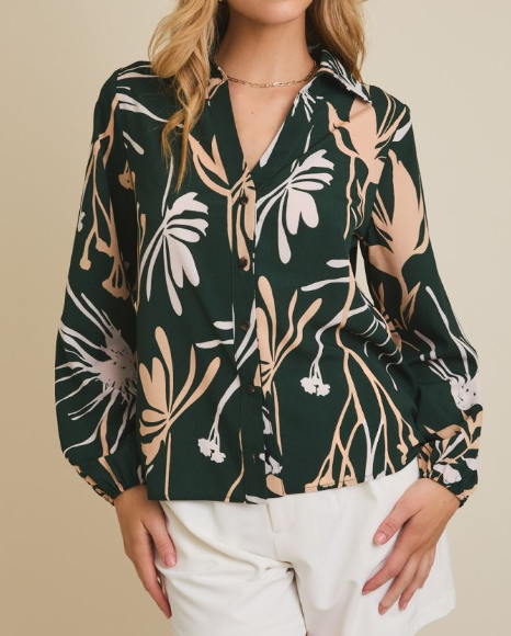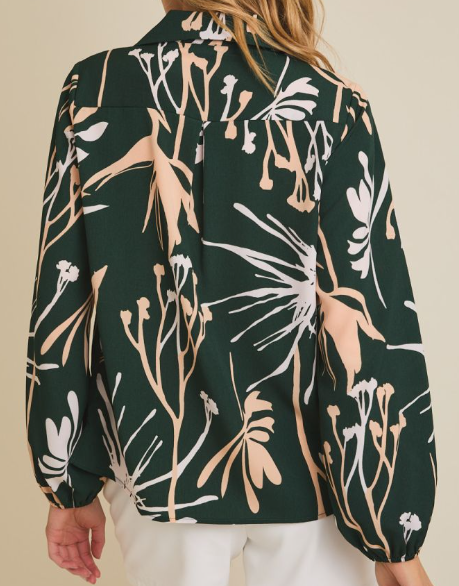The Emerald Blossom Blouse features a vibrant color and an elegant floral pattern, perfect for elevating your wardrobe. Crafted from 100% polyester woven fabric, its flowing design provides both comfort and style. For care, hand wash cold, avoid bleach, hang to dry, and use a cool iron if needed.