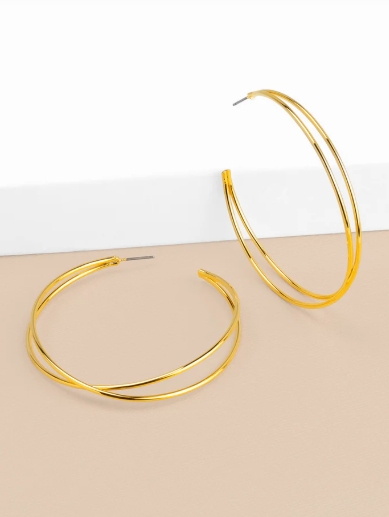 Crafted with an elegant double hoop design, these gold earrings offer a timeless appeal suited for any occasion. Their versatile style effortlessly complements both casual and formal outfits, making them a staple in any jewelry collection. Made with high-quality materials, they ensure durability and long-lasting shine, perfect for everyday wear or special events.