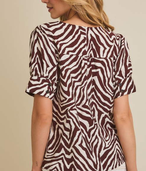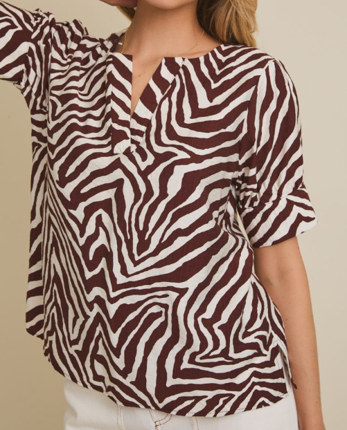 The Merlot Zebra Blouse features a bold zebra print design, making it a standout piece for any wardrobe. Crafted from soft, woven fabric, it ensures comfort while maintaining a polished look. With its versatile style, this blouse transitions seamlessly from professional settings to casual outings. Elevate your wardrobe with this dynamic and stylish addition.