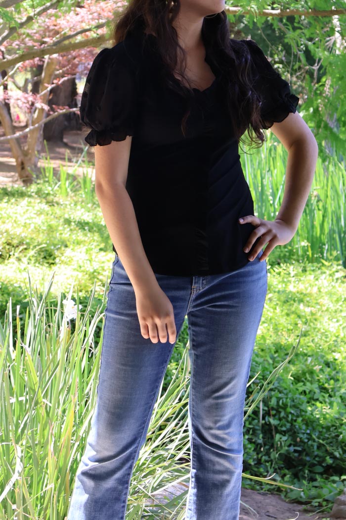 Ruffle Surplus Puff Sleeve Woven Top Black