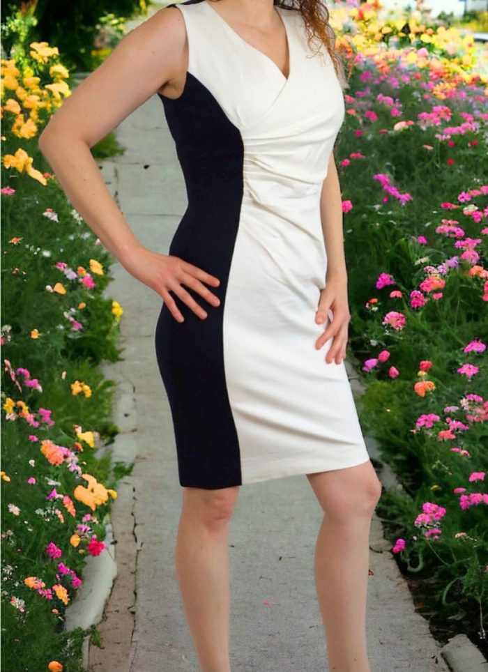 T Tahari V-Neck Gathered Side Zipper Back Dress
