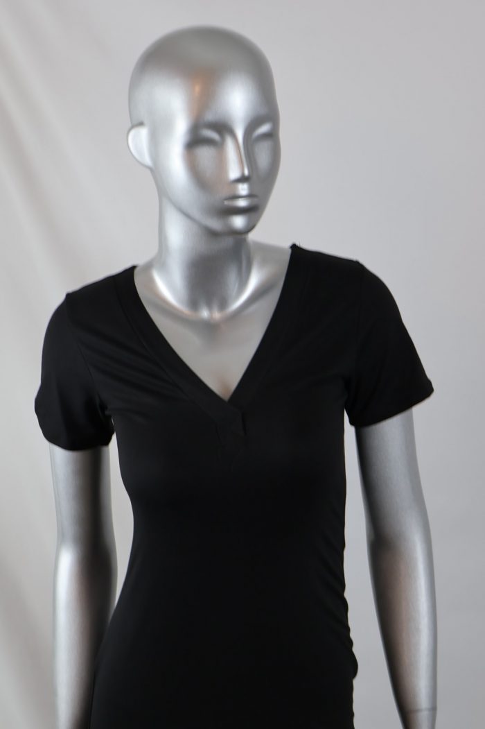 The V-Neck Short Sleeve Maxi Dress MAGIC FIT is designed with a flattering silhouette that complements various body types. Made from comfortable, stretchable fabric, it offers ease of movement and all-day wearability. Its versatile style makes it suitable for a range of occasions, from casual outings to semi-formal events. The short sleeves and maxi length add a touch of elegance to its timeless design.